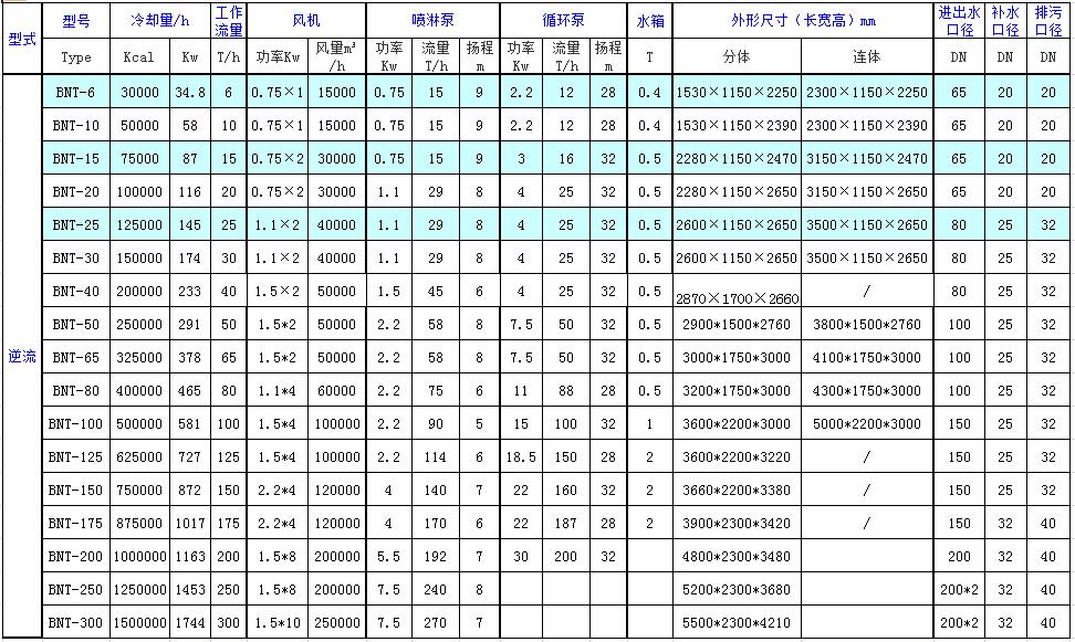 特點:噴淋水的流向(由上向下):噴淋水由噴淋泵打出并經過銅管冷卻器上部的噴淋管噴出,然后流經銅管冷卻器吸收熱量后經過風冷后回落到冷卻塔集水槽中供下一次循環使用。
